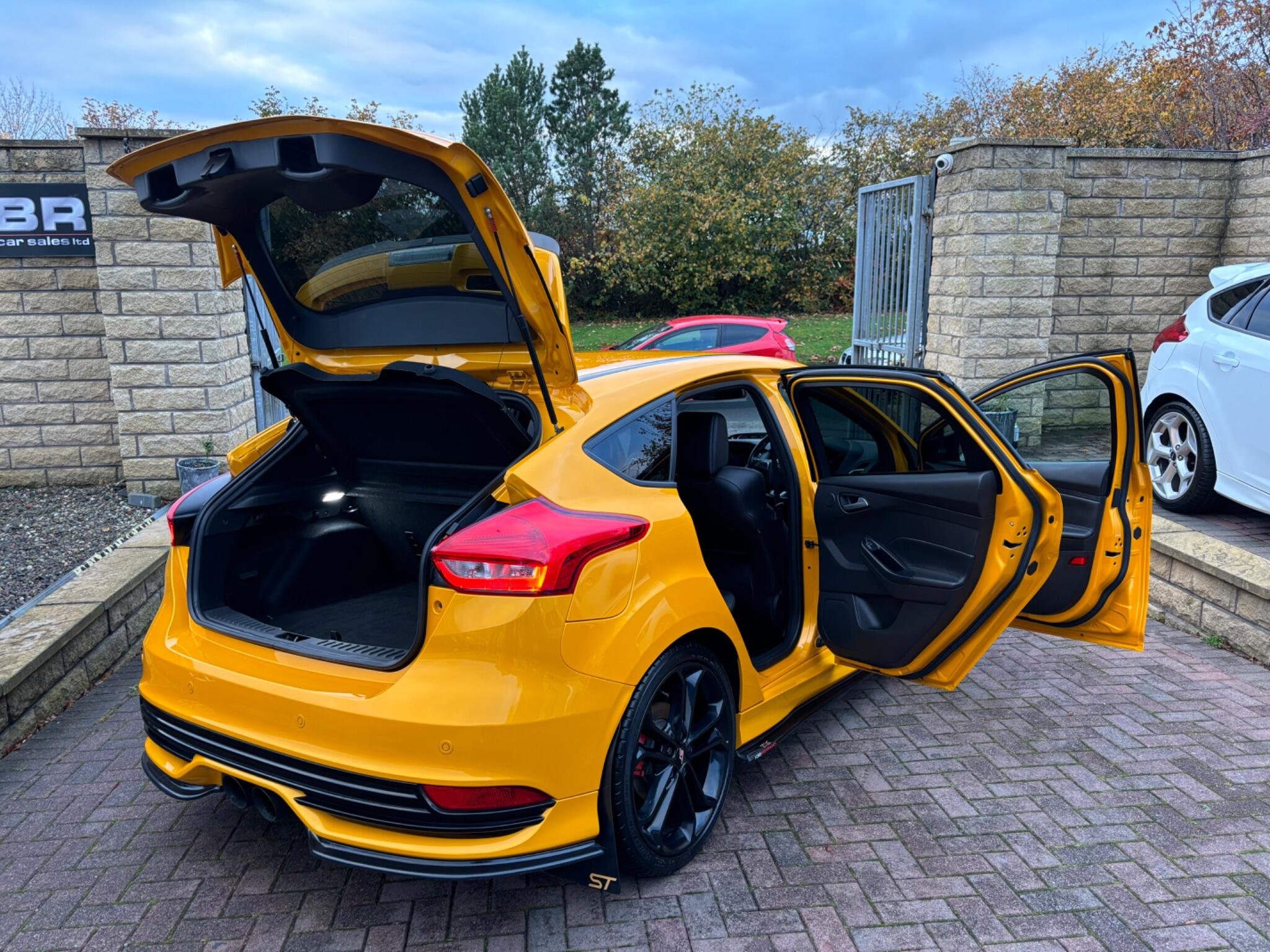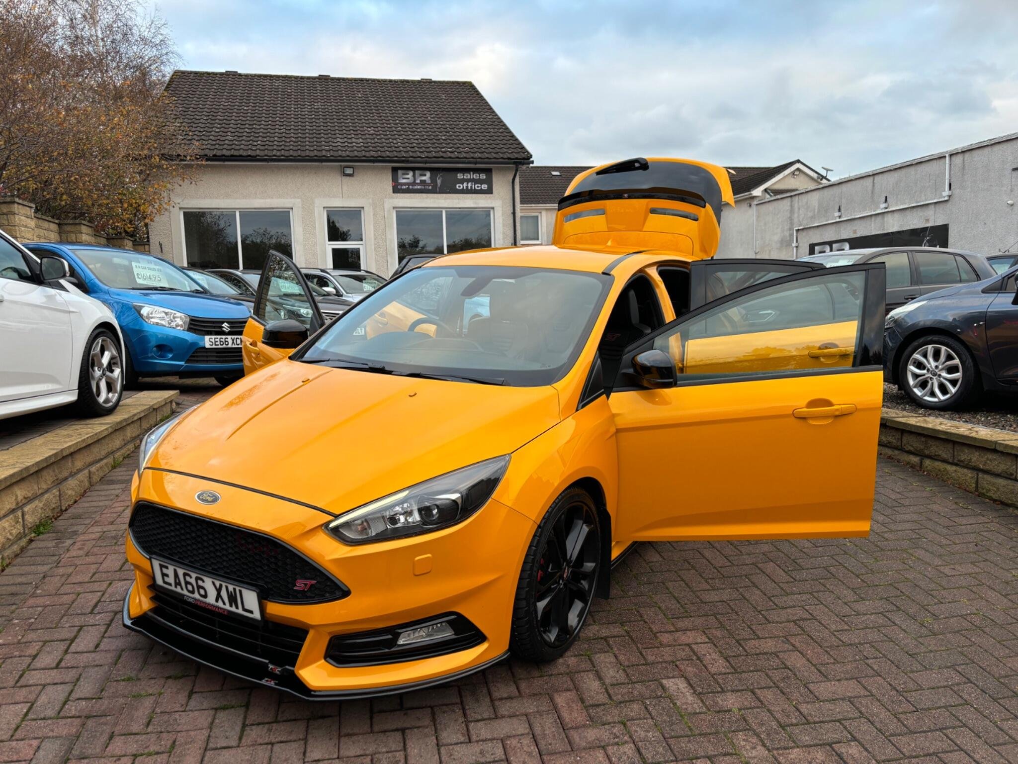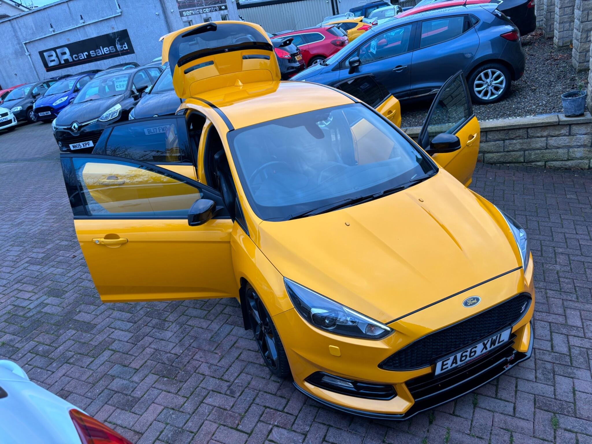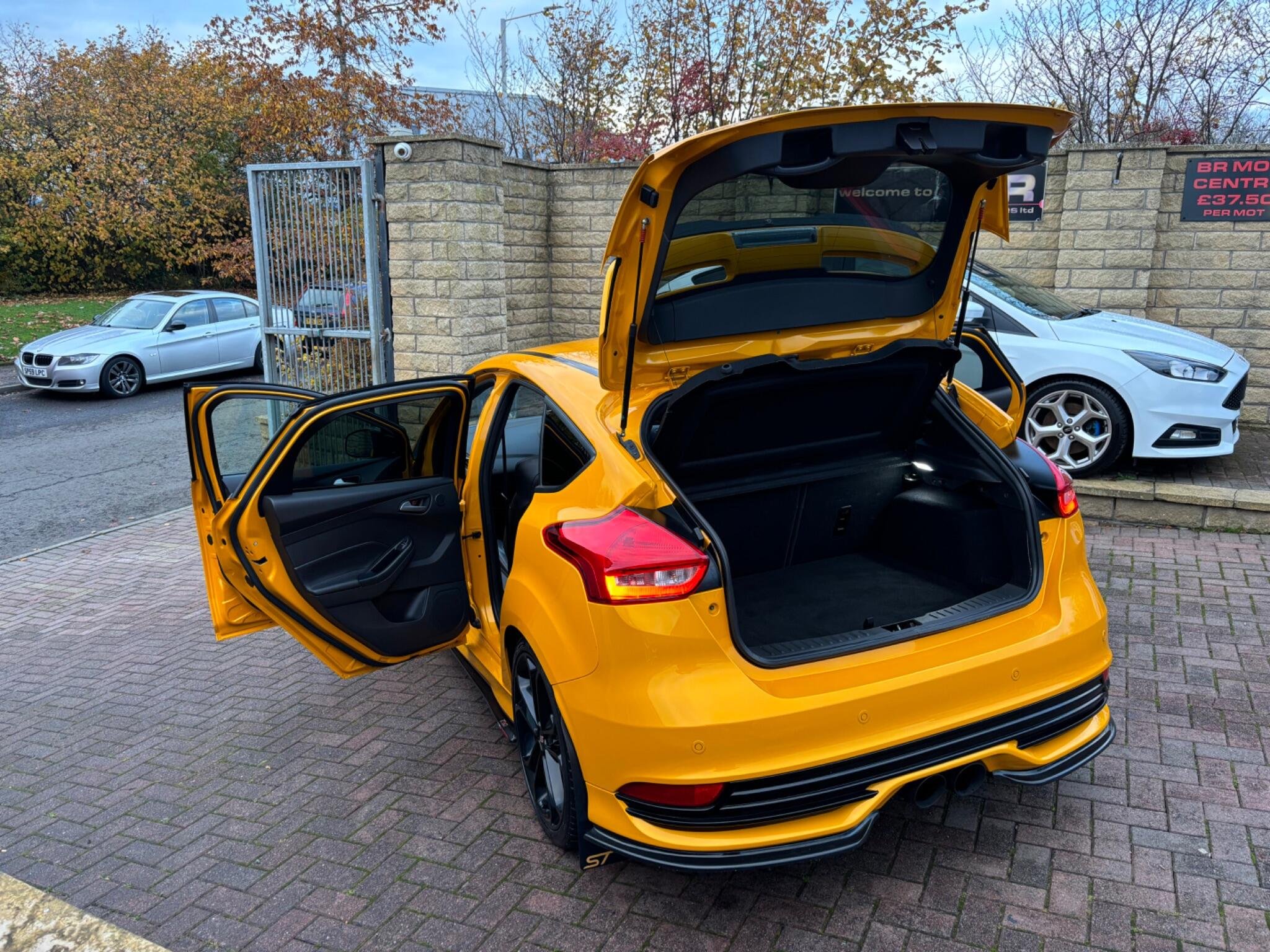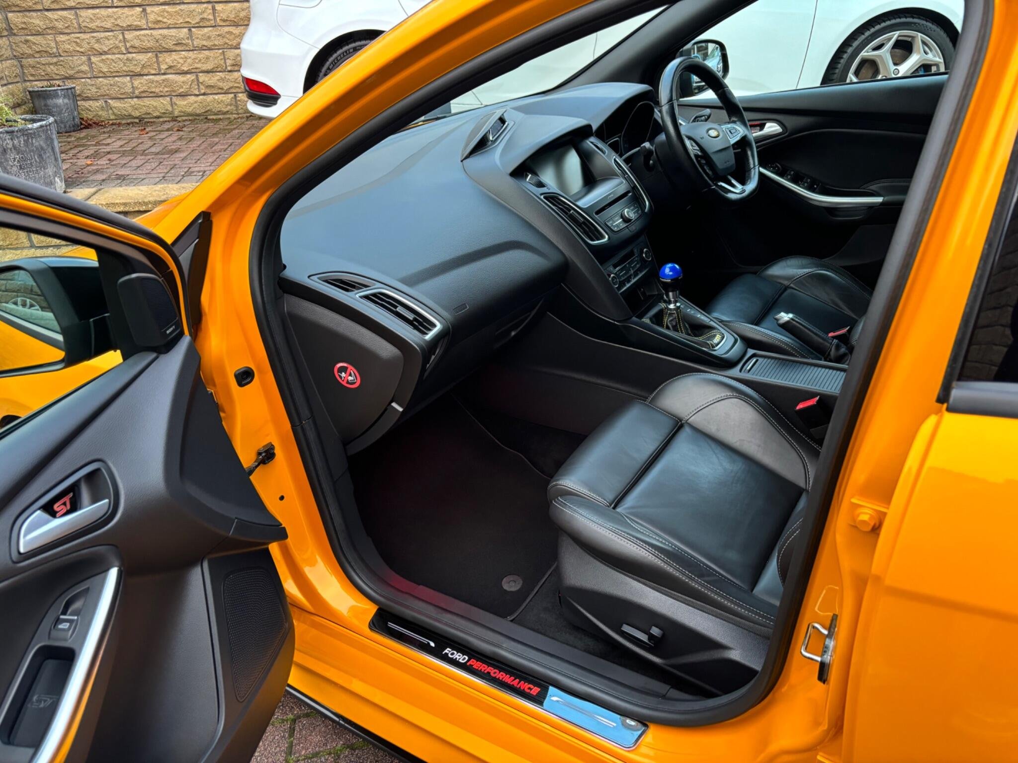 72,823 miles (service history + 4 brand new Michelin pilot sport tyres just fitted by ourselves) 1 year MOT - 3 month warranty - service all included at point of sale, We are delighted to offer for sale this stunning looking and superb driving Focus ST-3, finished in stunning Orange flake metallic colour!! Excellent condition throughout, never smoked in, Ford + one gentleman owner from new, This Focus has always been maintained to a very high standard it drives perfect pulls well and still feels nice and tight to drive, A real head turner, It will be sold with a full years MOT with no advisories on it and also serviced before collection in the B R service and MOT centre!! A must see stunning ST-3!! Spec: SAT-NAV, Reverse camera, Parking sensors, Full Black Leather, heated steering wheel, heated seats (X3 settings) cruise Control+Speed limiter, Voice activation, Bluetooth connectivity, auto digital climate control, air conditioning, 6 speed gear box, SYNC touch screen Sony CD/DAB Radio player with steering mounted controls + 2 remote USB sockets + Subwoofer, on board trip computer, remote central locking, 2 keys, alarm/immobiliser, start/stop system, start/stop button, auto lights-wipers-dimming rear view mirror, sports mode, heated washer jets, Daytime LED running lights, front arm rest, cup holders, storage compartments, illuminated vanity mirrors, X3 12 volt sockets, sunglasses holder, Digital clock+outside temperature display, turbo gauges, power steering, fully adjustable steering, electrically adjusting Recaro sports seats, 60/40 split/folding seats, front, side, curtain airbags, 5 headrests, 5 seatbelts, seatbelt pretensioners, internal central locking over-ride switch, ISOFIX, high brake light, ABS, traction control, hill start assist, rear wiper, fog lights, headlight washer jets, tinted glass, body kit, tail spoiler, XENONS, spare wheel+jack present, Alloys, £200 deposit secures this stunning looking Focus ST3! OPEN 7 DAYS - OPEN LATE 8 PM - PART EX WELCOME - CREDIT/DEBIT CARDS ACCEPTED - FINANCE ARRANGED - NATIONWIDE DELIVERY POSSIBLE BY ARRANGEMENT